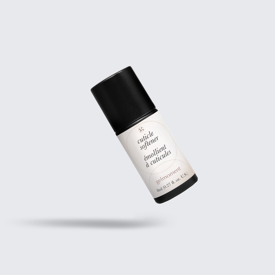 Start with clean, dry hands. Apply cuticle softener to cuticles and let sit for 1-2 minutes. Gently push cuticles back with gelmoment cuticle pusher and remove excess skin. Do not use force; cuticles should slough off easily. If necessary, remove excess with gelmoment cuticle nippers.